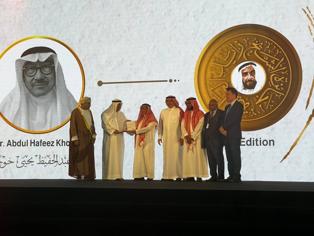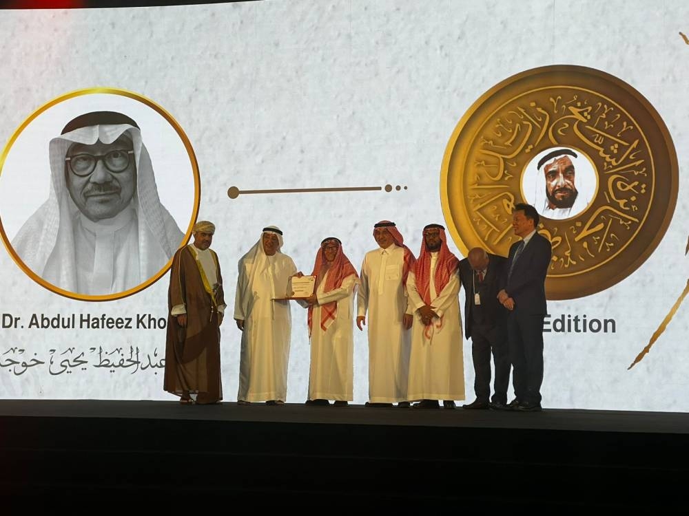 وسلم درع التكريم راعي الحفل طارق الهيدان وزير الخارجية الأسبق بدولة الإمارات، وسلطان العنقري السفير السعودي بدولة الإمارات ضيف شرف الاحتفال وبحضور عدد من منسوبي السفارة ووفد من المركز الوطني للطب التكميلي والبديل بالمملكة وصفوة من العلماء والباحثين المتميزين في الطب التقليدي والتكميلي والطب النبوي من جميع أنحاء العالم.