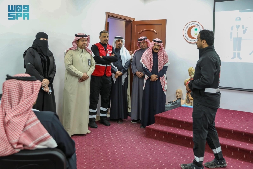 دشّن المدير العام للتعليم بمنطقة الجوف محمد بن علي القحطاني البرنامج التدريبي لمشروع «المسعف المدرسي»، بالتعاون مع فرع هيئة الهلال الأحمر السعودي بالمنطقة لتدريب 17 متدربًا على برنامج: «سفير الحياة في مجال الإسعافات الأولية الأساسية».