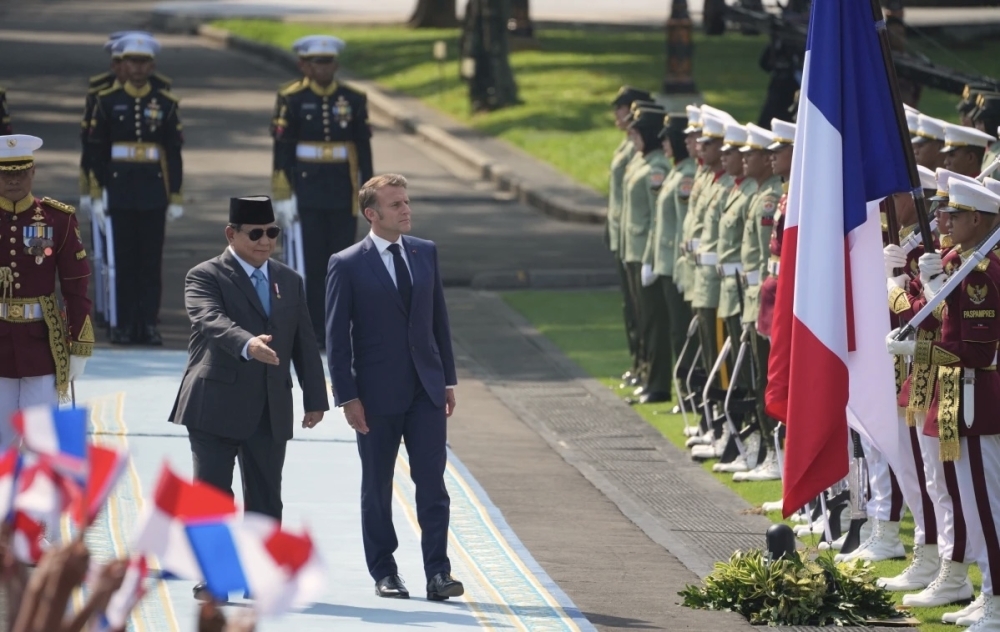 واستقبل سوبيانتو نظيره الفرنسي في قصر ميرديكا بالعاصمة جاكرتا، حيث أشرف الزعيمان على توقيع أكثر من اثنتي عشرة اتفاقية تعاون، شملت مجالات الدفاع والتجارة والطاقة والموارد الطبيعية. وعبّر ماكرون عن تطلعه إلى «آفاق جديدة» من التعاون، ملمّحًا إلى احتمالات طلبات مستقبلية لشراء طائرات رافال، وغواصات سكوربين، وفرقاطات خفيفة، إلى جانب تعزيز برامج التدريب العسكري المشترك.