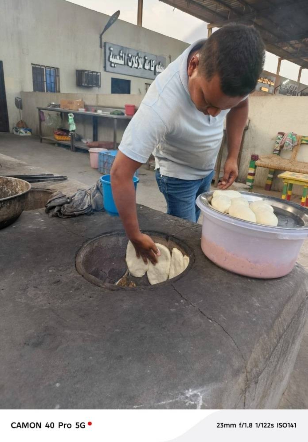 وتتنوع الأكلات من سمك التنور المشوي والدقيق والخمير مع الحلبة والسليط والإدامات مثل الباذنجان والكوسة مع الطمام المحنوذة، والتي تطهى على الحطب في مدة لا تتجاوز 20 دقيقة، وتقدم مع زيت السمسم السليط.