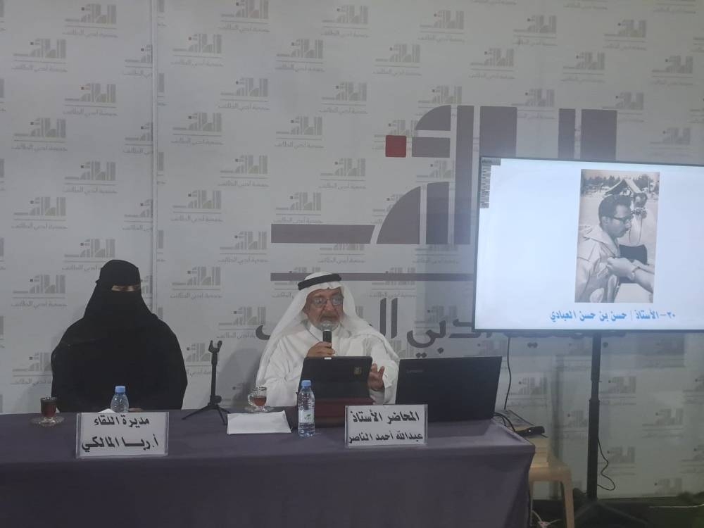 واستعرض الأستاذ عبدالله الناصر في مفتتح الأمسية بعض انطباعاته عن الطائف ۱۳۹۰ هـ ومشاهد ومسميات قديمة في الطائف .