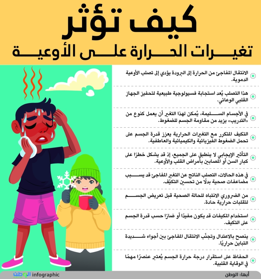• الحفاظ على استقرار درجة حرارة الجسم يُعتبر عنصرًا مهمًا في الوقاية القلبية.