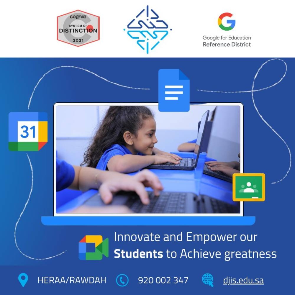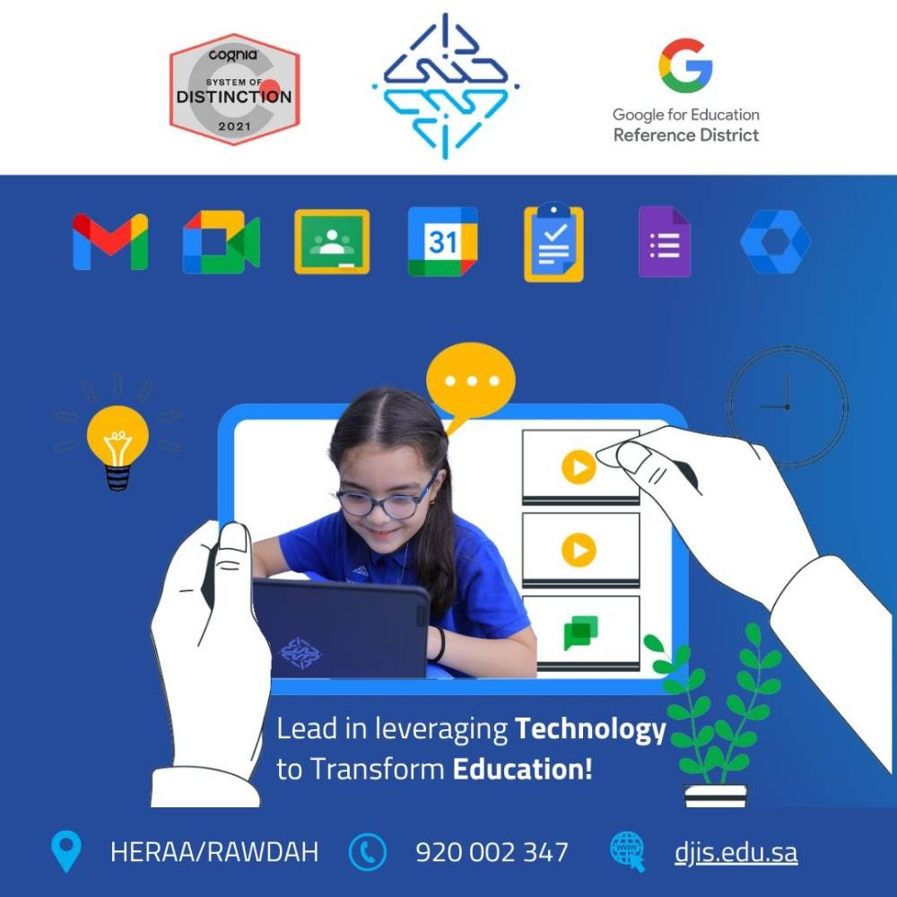 تُعد دار جنى من المدارس السعودية الرائدة في التحول الرقمي، حيث تعتمد بيئة متكاملة من Google for Education، وتوفّر لكل طالب جهاز Chromebook حديث يتيح له التعلم التفاعلي والبحث الذاتي. كما يتم دمج الروبوتات والبرمجة والذكاء الاصطناعي والصفوف الذكية في العملية التعليمية بشكل منهجي، وهو ما أهل المدرسة للحصول على الاعتماد العالمي المرموق كـ Google Reference District، لتكون نموذجاً للتعليم الرقمي المتطور في المملكة.
