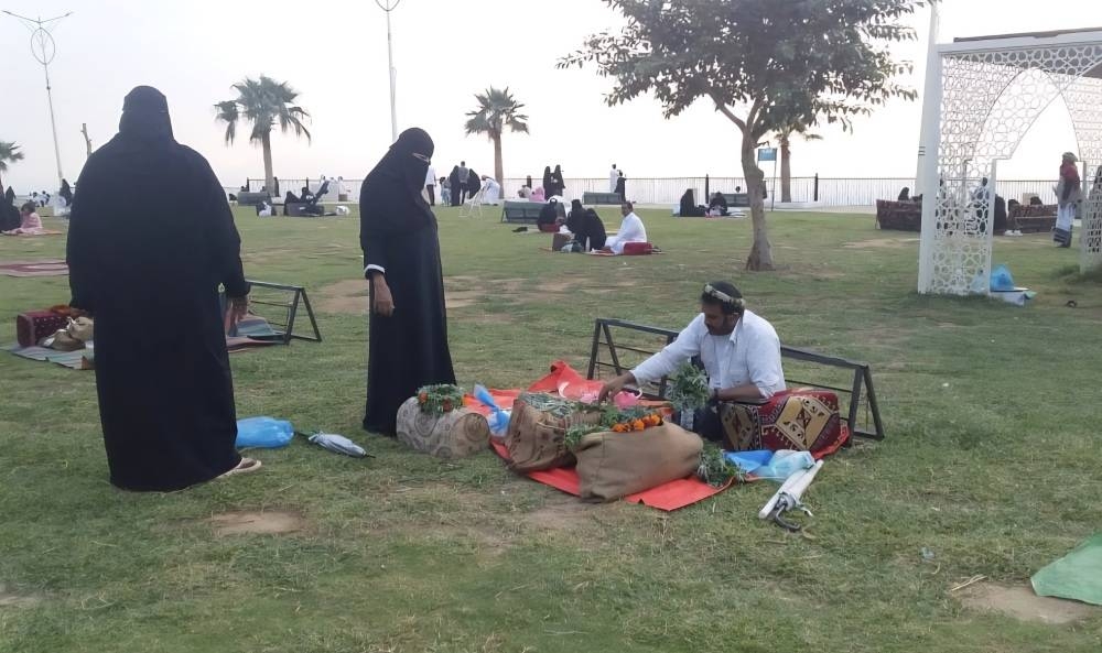 فيما يستقبل العازفون في مطل العارضة، الأهالي والزوار بالعزف على الناي، للترحيب بهم، وعرض النباتات العطرية، وبيعها على مرتادي المطل، تكتظ الحدائق بالأهالي والزوار للاستمتاع بالأجواء الممطرة والدافئة.