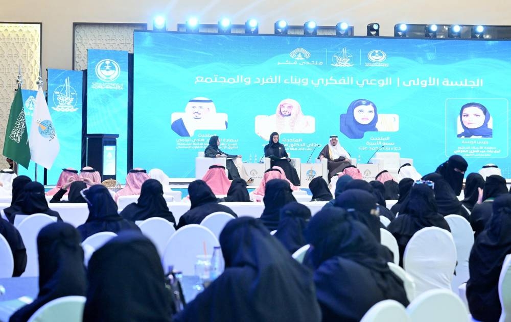 في الجلسة الأولى، بعنوان «الوعي الفكري وبناء الفرد والمجتمع»، أدارتها الأستاذة الدكتورة آمل بنت عبدالعزيز الهزاني، عضو مجلس الشورى، تناولت ثلاثة مواضيع، الأول حول الطفولة والتحصين الفكري ضد التطرف والانحراف، قدمته سمو الأميرة دعاء بنت محمد عزت، الرئيس التنفيذي لشركة المهرة للتعليم ورئيس لجنة الإعلام الأسري بجامعة الملك سعود، حيث أكدت على أهمية بناء جيل واعٍ منذ الصغر من خلال برامج تعليمية تركز على القيم الأخلاقية والإسلامية لتحصين الأطفال ضد الأفكار المتطرفة.