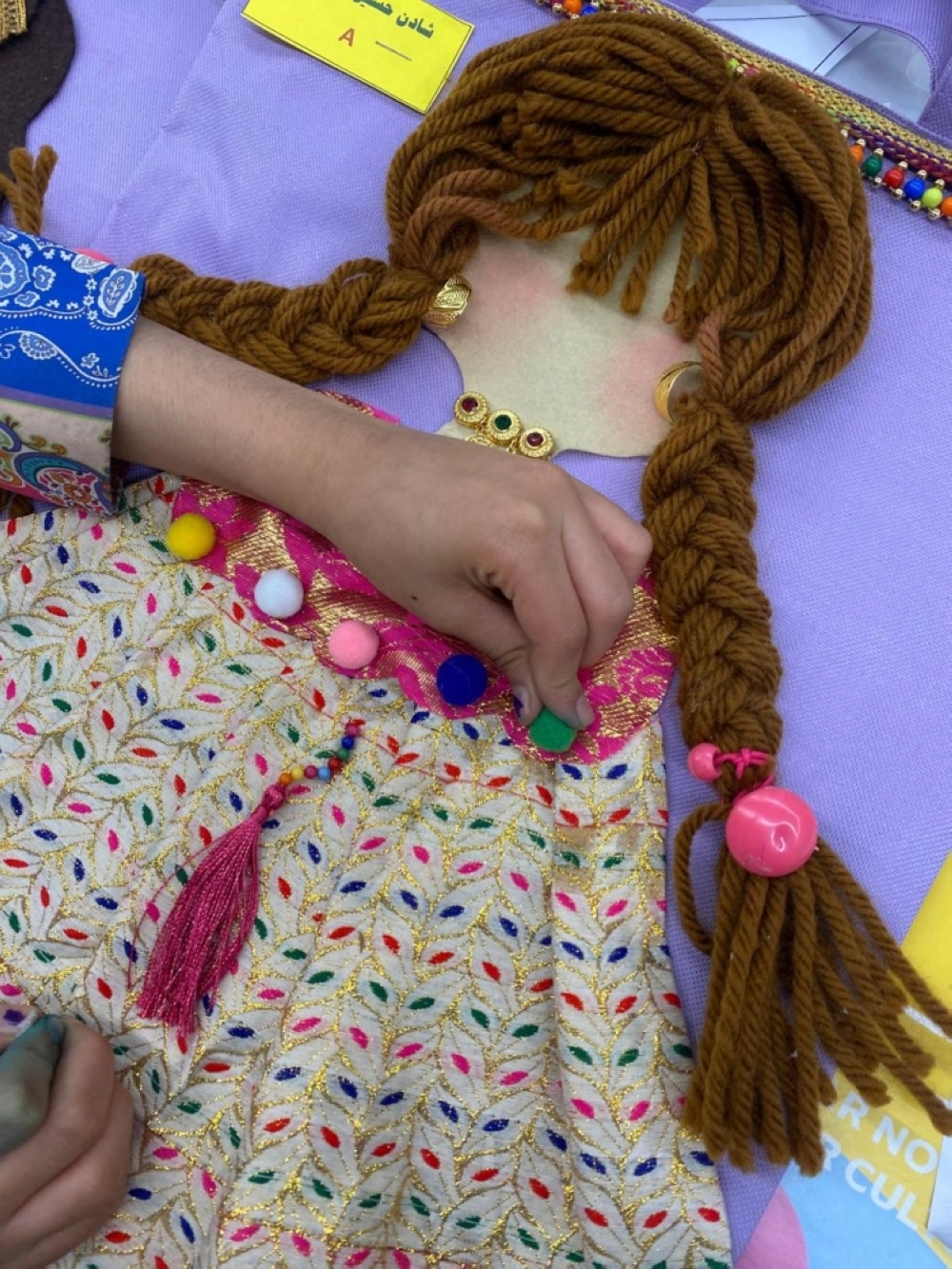 أضافت أن هذه الورش هي امتداد لروح امرأة ملهمة، الشيخة نورة الموسى، التي كانت تنسج الدمى بيديها وتغزل معها الفرح، واليوم نُحيي إرثها الجميل مع الأطفال، ونصنع الدمى كما كانت تفعل، ونحكي حكايات من قلبها، لنُبقي أثرها حيًا في قلوب الجيل الجديد، تعلمنا منها، وغرست لدى المتدربات والمتدربين من الأطفال، إحياء هذا الفن معهم، وعمل الدمى بأسلوبنا الخاص، ونروي الحكايات، لنغرس الإبداع ونُحيي الذاكرة.