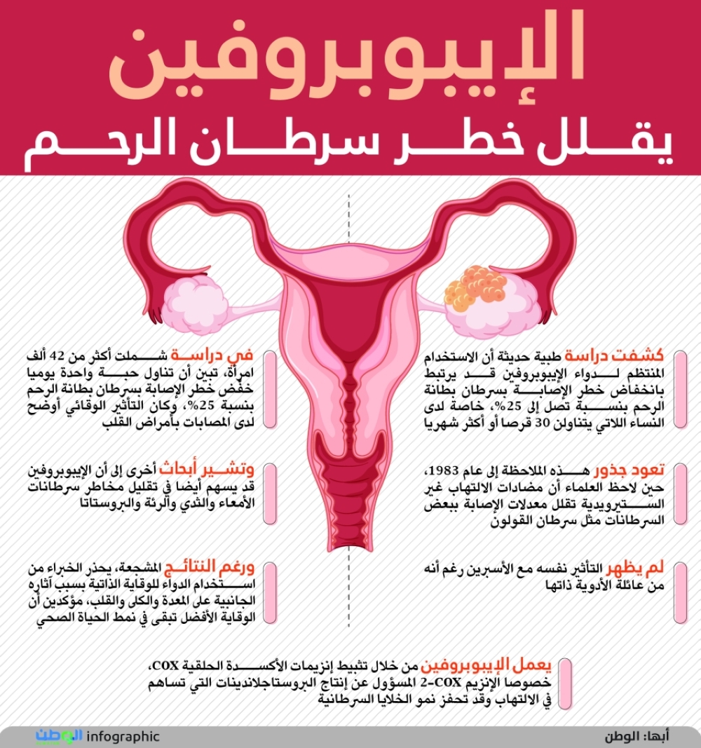 وتشير أبحاث أخرى إلى أن الإيبوبروفين قد يسهم أيضًا في تقليل مخاطر سرطانات الأمعاء والثدي والرئة والبروستاتا.