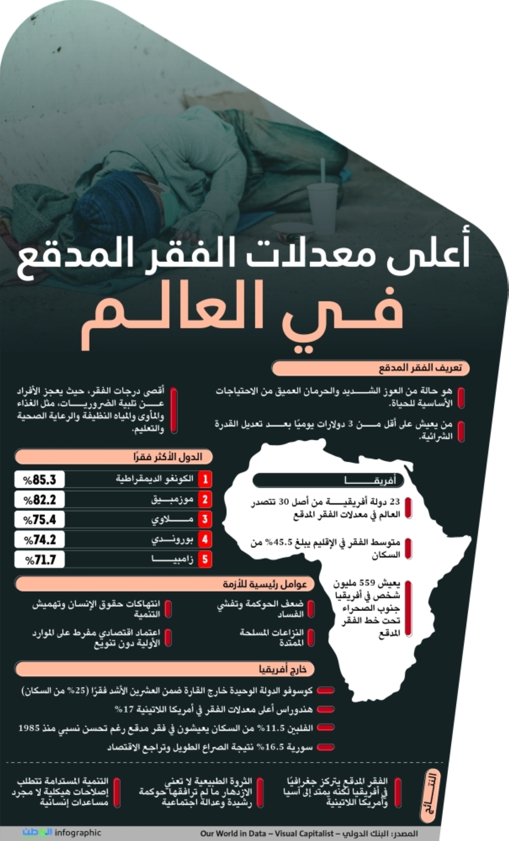 - 23 دولة أفريقية من أصل 30 تتصدر العالم في معدلات الفقر المدقع.