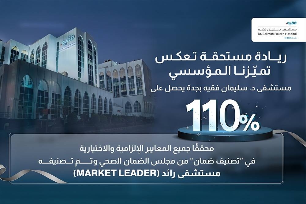 ويؤكد هذا التصنيف أن مستشفى د. سليمان فقيه يسهم بفاعلية في رسم مستقبل القطاع الصحي في المملكة من خلال الابتكار، والشفافية، والمساءلة، واضعًا معيارًا وطنيًا جديدًا للجودة والموثوقية في تقديم الرعاية الصحية.