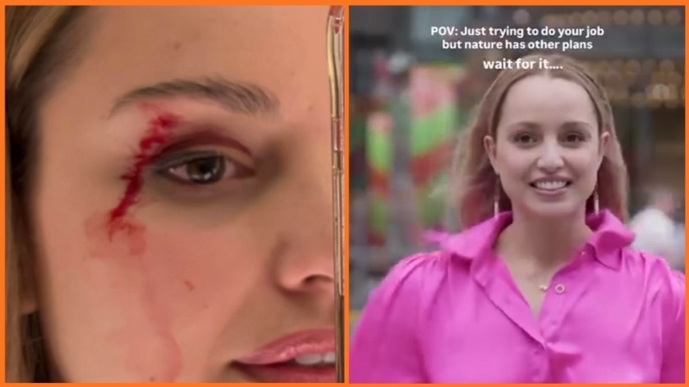 وتعود الحادثة للمراسلة جيس تايسون، التي تعمل ضمن برنامج «تي آو مع موانا» على قناة «واكاتا ماوري» المحلية، حيث كانت تغطي تقريرًا عن «الموضة السريعة» في بث مباشر، قبل أن يفاجئها طائر النورس ويصطدم بوجهها بقوة.