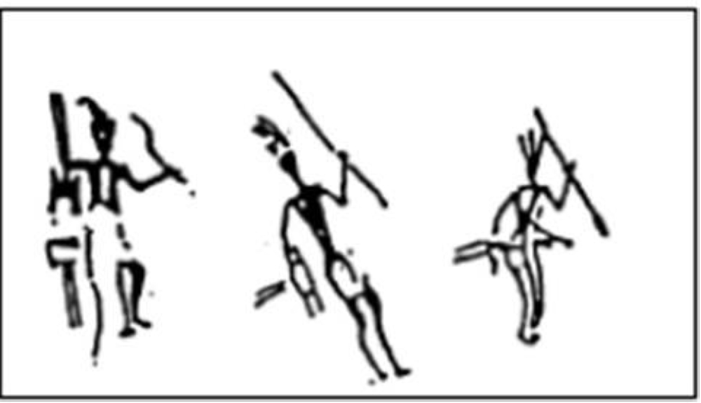 وأيضًا منظرًا لرجال يحملون رماحًا.