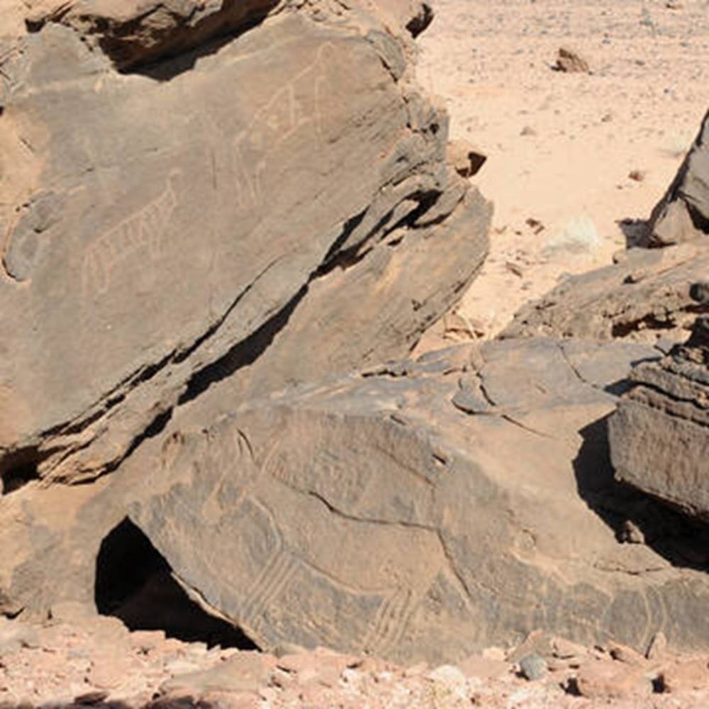 عندما تحول مناخ الجزيرة العربية من بارد ورطب (في العصر الحجري الحديث) إلى جاف وشديد الحرارة (في العصر البرونزي، حوالي 4600 سنة قبل الميلاد)، اختفت بعض العناصر الفنية الصخرية تدريجيًا، مثل الأبقار، ليحل محلها الإبل التي كانت قد دُجّنت على نطاق واسع. ونتيجة لذلك، أصبحت صور الإبل بارزة ومنتشرة على الواجهات الصخرية.