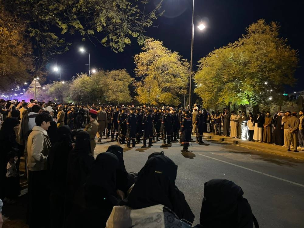 وبدأت الفعالية بعزف السلام الملكي، قبل أن تتقدم تشكيلات المشاة من منسوبي القطاعات الأمنية في استعراض منظم على امتداد الشارع، وسط تفاعل الحضور الذين حرصوا على توثيق المشاهد بعدساتهم، في أجواء وطنية عكست مشاعر الفخر والاعتزاز بتاريخ المملكة العربية السعودية الممتد لثلاثة قرون.
