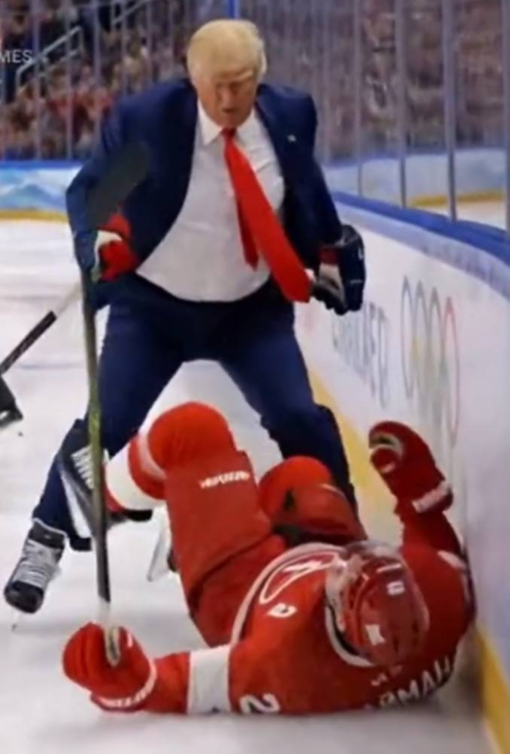 إذ لم يكتفِ الرئيس الأمريكي دونالد ترمب بالاحتفاء بالذهبية التي أنهت «جفافاً» أمريكياً امتدّ ستةً وأربعين عاماً، بل ذهب أبعد من ذلك حين نشر على منصته «تروث سوشيال» مقطعاً مُولَّداً بالذكاء الاصطناعي، يظهر فيه وهو يلكم لاعباً كندياً في الوجه احتفاءً بالفوز؛ مشهدٌ لا يعكس بهجة رياضية بقدر ما يجسّد نزعة إمبراطورية في توظيف الرياضة خدمةً للهيمنة.