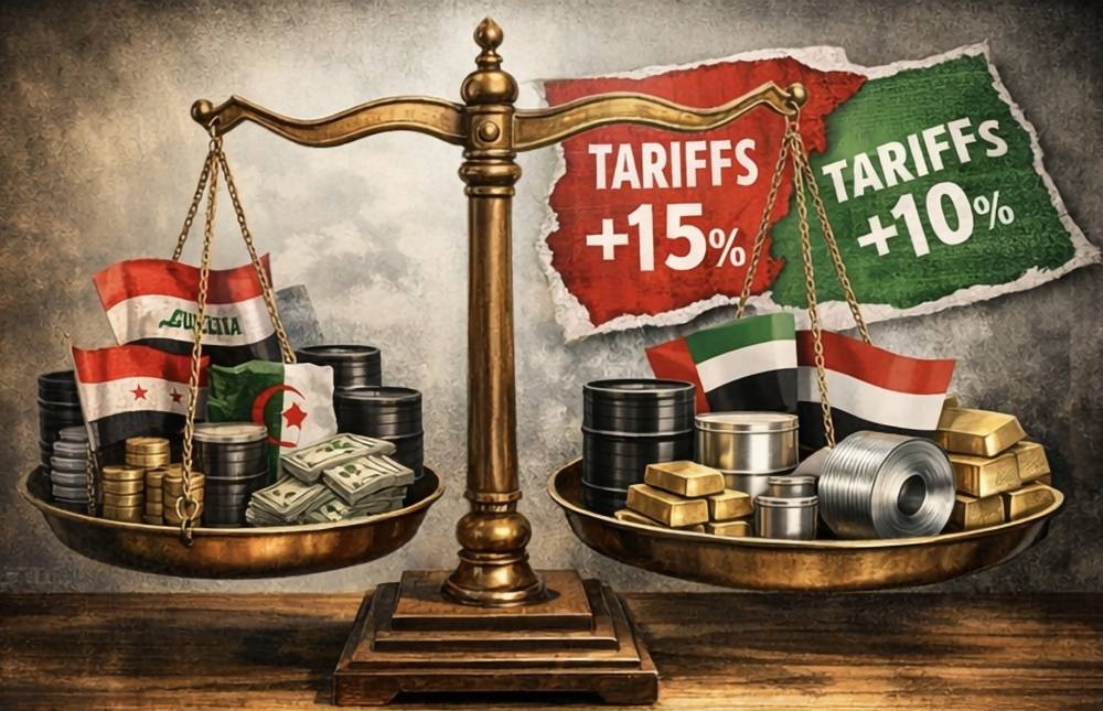 تُمثّل العراق وسوريا وليبيا والجزائر وتونس الكتلة الأكثر استفادة من القرار الجديد، بعدما كانت صادراتها إلى الولايات المتحدة تصطدم بجدار رسوم مرتفعة حدّ من تنافسيتها لسنوات. العراق، الذي كان يواجه تعريفة بلغت 39%، بات الآن أمام سقف موحّد عند 15%، ما يعزز موقع صادراته النفطية البالغة 6.27 مليارات دولار داخل السوق الأمريكية، ويمنح بغداد هامشاً أوسع لتعظيم عوائدها.