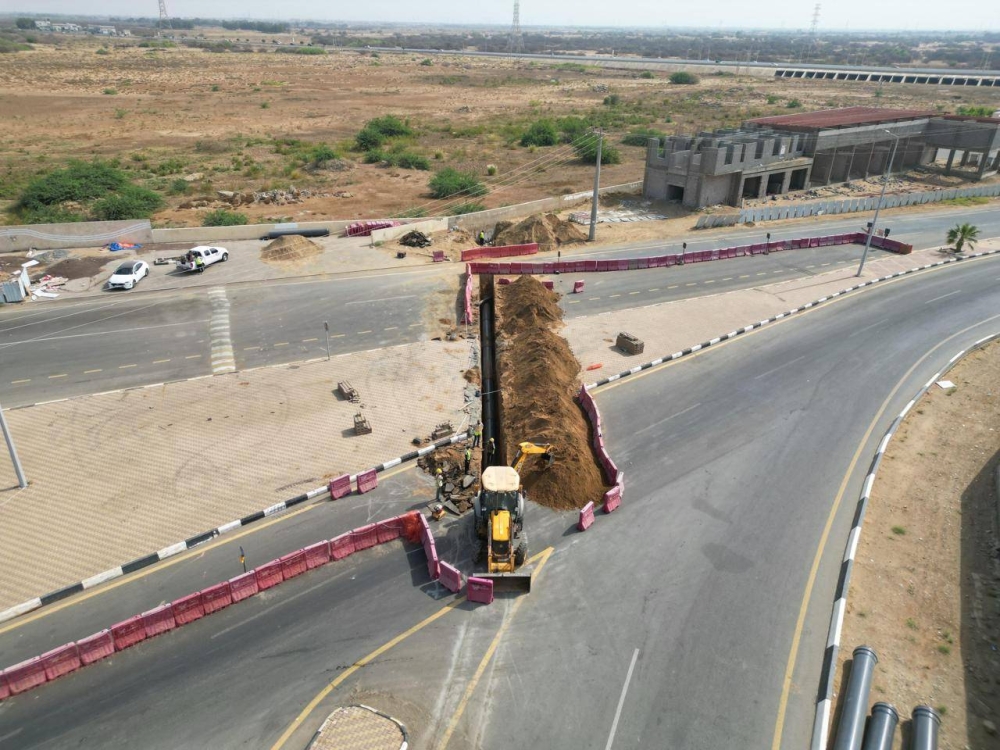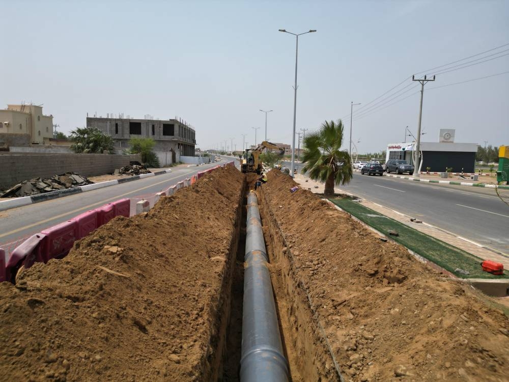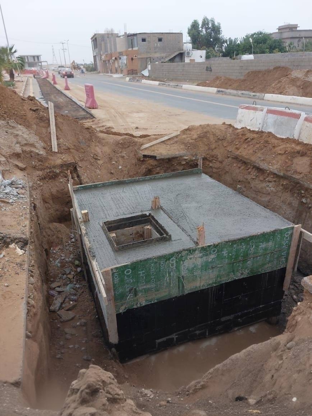 تم الانتهاء بالكامل من المسار الأول في منطقة الطريق الغربي، الذي شمل خط UPVC بقطر 700 مم وبطول 532 مترا، وخط UPVC بقطر 500 مم وبطول 430 مترا، بالإضافة إلى 16 منهلاً و26 مصيدة.