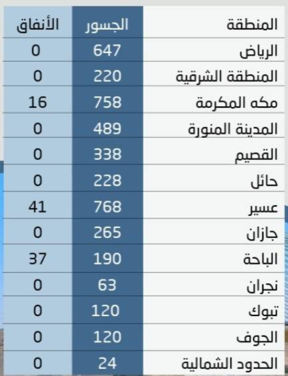 وبالنسبة للأنفاق، فإن هناك 10 مناطق لا تملك أي أنفاق، وتركزت الأنفاق تحديدًا في 3 مناطق هي عسير ومكة المكرمة والباحة، حيث سجلت هذه المناطق مجتمعة ما مجموعه 94 نفقًا.