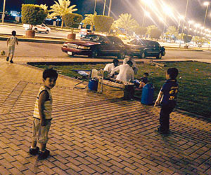 أما ظافر ومحمد الغامدي فقد أشارا إلى أنه حصل قبل قليل أن أحد السيارات كادت أن تودي بحياة طفل ذهب ليحضر الكرة قرب المكان الذي يجلسان فيه مع عائلاتهم وأطفالهم، وقالا: إننا تضايقنا من كثرة الألعاب غير المجانية التي يقوم عليها بعض العمالة الآسيوية، من مركبات مشحونة (5 لفات دائرية صغيرة بخمسة ريالات في وقت لا يتجاوز الدقيقتين )، وكذلك أكشاك غير نظامية"، وتساءلا: "أين ألعاب الأطفال والمراجيح المجانية، فهي إن وجدت في بعض الحدائق فهي قليلة ولا تكفي، مما يجعلنا عرضة لاستغلال أصحاب الألعاب غير المجانية المغرية للأطفال".