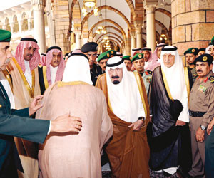 وعقب الصلاة تلقى خادم الحرمين الشريفين العزاء من إخوانه قادة وممثلي الدول الشقيقة.