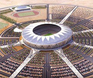 وترمز فكرة تصميم المدينة لـ"الجوهرة المشعة"، حيث ستكون واجهتها المستمدة من المشربية من شأنها توفير الظل المتناثر على الرواق الداخلي للاستاد، وصمم الملعب لاستضافة المباريات المحلية والإقليمية والدولية حسب مواصفات الفيفا العالمية، ويتكون من 6 طوابق رئيسة، تتضمن إلى جانب الطوابق المخصصة للجماهير، 18 مقصورة خاصة، ومرافق ملكية لاستضافة أكثر من 200 شخص، وتتضمن المرافق الملكية أيضا غرفا للاجتماعات والمؤتمرات وصالة استقبال وأخرى للطعام، إضافة إلى مسجد جامع وأكاديمية رياضية ومستشفى رياضي طبي متقدم وملاعب متعددة للرياضات الأخرى وملاعب رديفة ومجمع ضيافة للرياضيين ومجمع رياضي نسائي مغلق ومحطة قطار كهربائي.