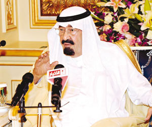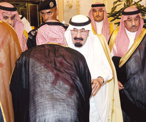 قال خادم الحرمين الشريفين الملك عبدالله بن عبدالعزيز لدى استقباله أول من أمس أصحاب السمو الملكي الأمراء والعلماء وكبار موظفي الديوان الملكي وديوان سمو ولي العهد وكبار المسؤولين وجمعاً من المواطنين وقادة وكبار ضباط الحرس الملكي الذين قدموا للسلام عليه وتهنئته بشهر رمضان المبارك "إخواني وأبنائي.. أشكركم وأدعو لكم بالتوفيق في هذا الشهر الفضيل وأن يتقبل الله منكم دعاءكم لوطنكم وأتمنى لكم التوفيق والصحة والعافية، وهذا البلد إن شاء الله بعز وإلى عز، إلى مكانته اللائقة إن شاء الله، وأتمنى لكم التوفيق، وكل عام وأنتم بخير.