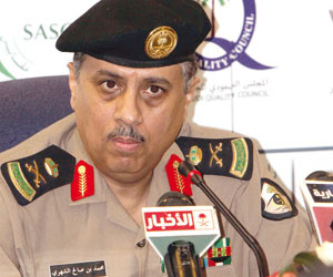 وأوضح في مؤتمر صحفي تعريفي لملتقى الجودة، الذي يرعاه مساعد وزير الداخلية للشؤون الأمنية الأمير محمد بن نايف، وتستضيفه جدة اليوم، أن الملتقى يحقق 3 أهداف أساسية لنشر مفاهيم وأساليب الجودة والإتقان في العمل وصولا لخدمات أمنية متميزة ومتفردة لخدمة المواطنين والمقيمين والمعتمرين وضيوف الرحمن، مشيرا إلى أن الملتقى يستهدف كبار المسؤولين الرسميين وصانعي القرار إلى جانب العلماء والباحثين من داخل المملكة وخارجها، والشركات المتخصصة بالتجهيزات الأمنية. من جهته، أوضح مساعد مدير الأمن العام للتخطيط والتطوير اللواء محمد بن صالح الشهري أن الملتقى يهدف إلى الاستفادة من أفضل الممارسات والتقنيات الحديثة في مجال العمل الأمني الميداني والإداري في قطاعات الأمن العام والإدارات الأمنية المرتبطة به بعد تلمس الواقع والمعطيات.