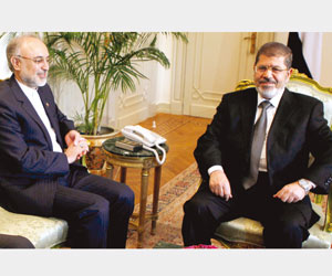 من جهة أخرى، بحث الرئيس المصري الدكتور محمد مرسي مع وزير خارجية إيران على أكبر صالحي في القاهرة أمس تطورات الأوضاع الدولية والإقليمية بمنطقة الشرق الأوسط، والعلاقات الثنائية.