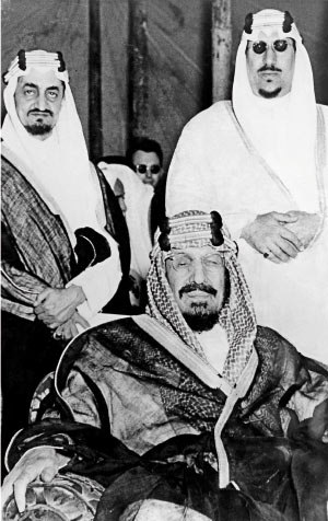 وكان يبدو تحت سطح الخيمة المنخفض أطول من قامته التي بلغ طولها ستة أقدام وخمس بوصات. ومع ذلك كانت يداه صغيرتين ودقيقتين وهناك شيء ينم عن التواضع فيهما. وكان الملك يرتدي عباءته البدوية المعتادة ذات اللون البني وعلى رأسه كوفية قطنية تتخللها مربعات حمراء اللون. والملك كان حافي القدمين لأن خفيه كانا خارج الخيمة. وفي مؤخرة الخيمة كان هناك صف من الرجال يجلسون على مقاعد أوروبية ويرتدون جوارب وأحذية. وبرغم أن ملابس الملك كانت بسيطة فإنه كان يجسد كل معالم الملك. إن الصفات الملكية لم تكن منحصرة في هيئته وحدها، كما لم تكن قاصرة على أسلوبه الرقيق بصورة لم أكن أتوقعها. إن صفات الملك كانت حاضرة كعمود مشع داخل الخيمة ولم تكن تتطلب أي شرح أو تفسير. دعاني الملك أن أجلس على المقعد القريب منه. وإلى جواره كان مترجمه الرسمي جاهزاً بدفتر وقلم في يده.