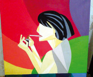 ومن اللوحات اللافتة للفنانة هناء الغامدي لوحة "امرأة تدخن" التي تقول عنها: إنها لوحة واقعية، مجتمعي تحكمه العادات والتقاليد ولكن المصالح أصبحت دخيلة على المجتمع فالآباء والأمهات أصبحوا يربون أبناءهم على الركض وراء مصالحهم حتى إن كثيرا قد يتخلى عن تلك القيم والعادات مما جعل الأبناء لديهم التفكير نفسه فأصبحت الفتيات لا يقدرن تلك العادات، عادة التدخين ليست جديدة بالمجتمع، لكن الجديد هو تدخين الفتيات، قد تكون بداية التدخين مزاحا أو تحديا وغالبا ما تكون تقليدا. واختارت الغامدي الأسلوب التكعيبي في رسمها لأنه قد يظهر معاناة تجتاح جمال الحياة، حسب تعبيرها، وتضيف: حبي للفن التشكيلي ورغبتي في العمل دفعاني لخوض غمار هذه التجربة الفنية وأطمح بإيصال أفكاري إلى أكبر شريحة في المجتمع من خلال فني، أما الغموض فهو شيء يميز اللوحات حيث يجعل المتذوقين يقفون طويلا لتأمل اللوحة، لا أحب كثرة التفاصيل والشرح فقد أكتفي بوضع أفكاري، فالأفكار كالبصمة قد تتشابه ولكن لا تتطابق لذا نشعر بالغرابة حينما نرى أفكارا مشابهة لأفكارنا ولكن بطابع مختلف.