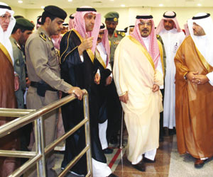 تفقد أمير منطقة المدينة المنورة الأمير عبد العزيز بن ماجد أمس مطار الأمير محمد بن عبد العزيز الدولي، وذلك للوقوف على مستوى الخدمات التي تقدمها الجهات الحكومية للحجاج وضيوف الرحمن خلال موسم الحج. عقب ذلك اطلع أمير المدينة المنورة على المراحل الأولية لمشروع المطار الجديد، وما تم إنجازه حتى الآن من قبل الشركة المطورة لمطار الأمير محمد بن عبدالعزيز الدولي بالمدينة المنورة التي من المقرر أن تسلم مشروع المطار الجديد في بداية عام 2015م بحسب الرئيس التنفيذي لشركة طيبة لتطوير المطارات المهندس ممدوح طرابيشي. وأوضح طرابيشي أنه سيتم استخدم أحدث الوسائل التقنية في منظومة المطار الجديد، مبينا أن مساحته تصل إلى 8 ملايين متر مربع. ولفت إلى أن إجمالي مسطحات المباني الخاصة بمبنى المطار الرئيسي يصل إلى 150 ألفا و695 مترا مربعا، وتتكون من صالات للسفر والمغادرة وبها 16 بوابة سفر للمرحلة الأولى متصلة بـ 31 جسرا معلقا لدخول الركاب إلى الطائرات و 64 كاونترا لإجراءات السفر و 25 أخرى للخدمة الذاتية. وأضاف أنه يوجد 12 كاونترا خلال موسم الحج و 10 سيور للأمتعة العادية والكبيرة في صالات الوصول و6 قاعات لانتظار الحجاج بمساحة تقدر بـ9 آلاف و480 مترا مربعا، بجوارها مواقف تتسع لـ 100 حافلة بالإضافة للمكاتب والمرافق اللازمة للجهات الأمنية والشركات العاملة بالمطار ومدرجات المطار ومواقف الطائرات والمباني المساندة. وأضاف أن هناك ألف موقف للسيارات العامة و 300 لسيارات شركات التأجير، فضلا عن مسجد بمساحة ألفي متر مربع.