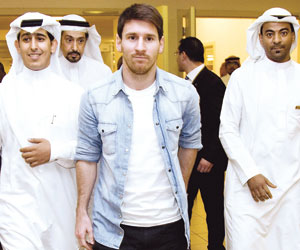 ضجت مواقع التواصل الاجتماعي فيسبوك وتويتر على الإنترنت و"واتس آب" مساء أول من أمس بالصورة التي التقطها الزميل محمد مشهور لنجم الأرجنتين وبرشلونة الإسباني محاطا برجال الأمن المكلفين بحمايته لدى استقباله في المطار عند وصوله للرياض لخوض مباراة ودية مع منتخبه أمام نظيره السعودي اليوم.