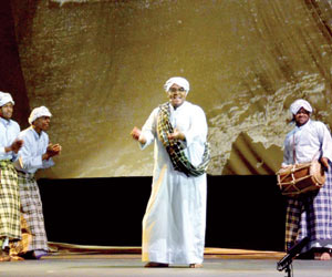 وتحول تجهيزات "المسرح" العرض إلى ما يشبه الاحتفالية داخل سفينة كبيرة في وسط البحر من خلال الاستعانة بالمؤثرات الضوئية والصوتية، ومزيج متنوع من أهازيج البحر وأداء الرقصات على إيقاع الطبول، ومشهد مسرحي لرمي الشباك ثم سحبها من قاع البحر.