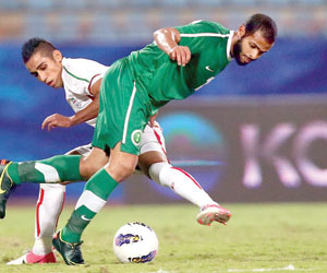 وتوالى الهجوم والمحاولات السعودية عبر المزعج بدر الخميس الذي حاول بالرأس والقدم.