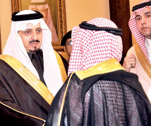 استقبل أمير منطقة عسير الأمير فيصل بن خالد بن عبدالعزيز أول من أمس، بالصالة الرئيسة بالخالدية في أبها أصحاب الفضيلة القضاة ومديري الإدارات الحكومية وأعضاء مجلس المنطقة والمجلس البلدي ومجلس شباب عسير ومشايخ القبائل وجموع المواطنين من مدنيين وعسكريين، والذين قدموا لتقديم واجب العزاء في وفاة والدته الأميرة صيتة بنت فهد الدامر.