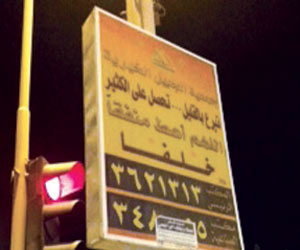 تتسبب بعض اللوحات الإعلانية على إشارات المرور بالجبيل بصورة عشوائية في حجب الرؤية ومتابعة الإشارة الضوئية التي تنظم السير في الشارع، الأمر الذي يحدو بعض السائقين إلى اللجوء لاستخدام "منبه سيارة" بطريقة مزعجة للتخلص من زحمة الطريق.