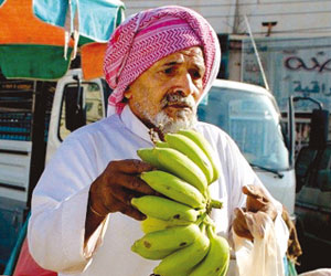 وعن زراعة الموز يقول العمري: "لا ينضج الموز البلدي إلا في فصل الصيف ولا يضاف إلى زراعته أي مواد، زراعته تبدأ في أوائل الشتاء حين تحرث الأرض جيدا مرات عدة، كما تحتاج أشجاره إلى الماء أكثر من أشجار الفاكهة الأخرى لأنه يزرع في أحواض وجذوره سطحية غير متعمقة في التربة إضافة إلى أنها سريعة النمو وتحتفظ بالماء بداخلها لفترة طويلة"، موضحا أن عمر شجرة الموز لا يتجاوز 5 سنوات ثم تتوقف عن طرح الثمرة إلا أنه يستفاد منها في الشتلات التي تنمو من خلالها ثم تقص نهائيا.