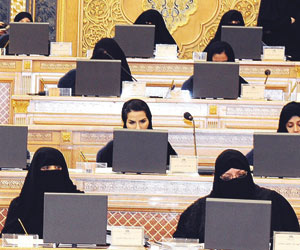 بعد شد وجذب، واتصالات بدأت عشية انطلاقة الدورة الجديدة وصبيحة أول يوم عمل، تدارك مجلس الشورى تغييبه لوسائل الإعلام عن وقائع الجلسة التاريخية التي عقدت أمس بحضور المرأة لأول مرة إنفاذا لقرار خادم الحرمين الشريفين الملك عبدالله بن عبدالعزيز، بـ"مؤتمر صحفي" دعي إليه الإعلام المحلي على عجل، و3 صور تم إرسالها عن طريق إدارة العلاقات العامة لعناوين البريد الإلكترونية للصحف، تظهر في واحدة منها فقط "نساء الشورى" ومشاركتهم التاريخية.