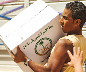 وزع مكتب هيئة الإغاثة الإسلامية العالمية التابعة لرابطة العالم الإسلامي في لبنان أمس 500 حصة غذائية على 500 عائلة نازحة من سورية إلى منطقة الكورة الشمالية اللبنانية إضافة إلى 1500 حصة غذائية في منطقة أبي سمراء في مدينة طرابلس الشمالية اللبنانية و500 حصة غذائية لـ500 أسرة من النازحين الفلسطينيين من سورية إلى مخيم البداوي اللبناني الشمالي.