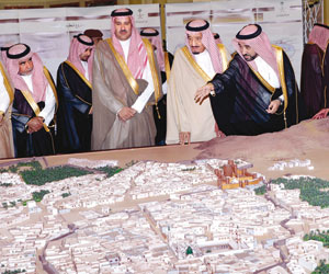 واطلع سمو ولي العهد على مشاريع المنطقة والمخطط الشامل للمدينة وأعمال التخطيط العمراني للمدن والقرى ومشاريع الإسكان العام في المدينة ومشاريع النقل والمشاريع الصحية والتعليمية ومشاريع الآثار والمراكز الحضرية وتطوير العشوائيات وتطوير الميقات، كما اطلع سموه على مجسم للمدينة المنورة في العهد السعودي.