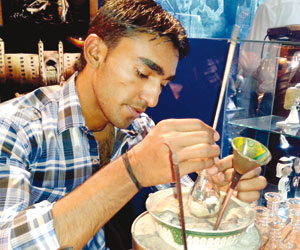 يتجمهر السياح في إحدى المناطق الترفيهية في دبي، حول شاب باكستاني درس الطب، وامتهن الرسم على الرمل، ورغم المجموعة المحيطة يبدو منشغلا في ممارسة هوايته المفضلة بإعداد قواريره الزجاجية، وتشكيل ملامح من البيئة الصحراوية داخلها بإتقان باستخدام الرمل الملون.