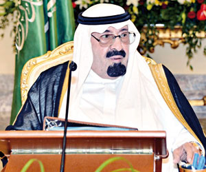 أكد خادم الحرمين الشريفين الملك عبدالله بن عبدالعزيز حرصه على أمن البلاد والعباد واستقرارهما وضمان التطور الذي يشمل القطاعات جميعها والرقي بمستوى الإنسان السعودي لمواجهة تحديات العصر، وحذر من مغبة المغامرات التي ترتكبها بعض الدول وتدخلها في الشؤون الداخلية للآخرين مما يزيد حدة التوتر وعدم الاستقرار.
