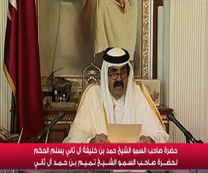 أعلن أمير دولة قطر الشيخ حمد بن خليفة آل ثاني عن تسليمه الحكم لابنه ولي العهد الشيخ تميم بن حمد بن خليفة آل ثاني .
