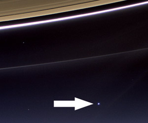 قالت إدارة الطيران والفضاء الأميركية "ناسا" إن مسبارا فضائيا آليا على بعد نحو 1.5 مليار كيلومتر من الأرض حول أنظاره بعيدا عن كوكب زحل وأقماره العديدة ليلتقط صورة للأرض. وتظهر الصورة التي التقطها المسبار الأرض على شكل نقطة صغيرة جدا زرقاء اللون وكانت أصغر وباهتة أكثر من صور أخرى سابقة وكان في المقدمة كوكب زحل وحلقاته.