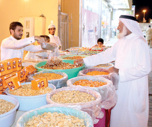 وقال صالح محمد أحد الباعة المتجولين بحي البلد، إنهم تركوا بيع الخضار منذ دخول العشر الأواخر من رمضان واستبدلوها ببيع الحلويات والمكسرات بالأسواق في الأماكن العامة إذ إن الزحام الشديد الذي تشهده الأسواق حاليا يحفز الكثير من الزبائن على شراء حلويات العيد تجنبا للازدحام، مضيفا أنهم يحرصون على تنويع ما لديهم من الحلويات العادية أو الشوكولاته والمكسرات بأنواعها المختلفة حيث ننتظر هذه الأوقات بفارغ الصبر فهي تشكل بالنسبة لنا عصب تجارة مهم وتعوضنا عن فترات الركود التي مررنا بها خلال الأشهر الماضية.