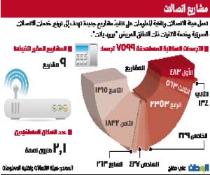 2.1 مليون نسمة من سكان المملكة، ينتظرون تنفيذ 9 مشاريع هامة للاتصالات، بهدف توفير خدمات الاتصال الصوتية والإنترنت ذات النطاق العريض "البرود باند".