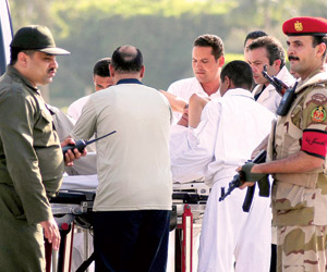 غادر الرئيس المصري الأسبق حسني مبارك سجن طرة أمس بعد عامين ونصف العام قضاهما فيه بطائرة عسكرية أقلته إلى مستشفى المعادي الذي سيبقى به بعد أن أمر نائب الحاكم العسكري بإبقائه قيد الإقامة الجبرية.