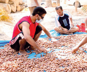 وحذر المهندس الوصيبعي من جمع التمور المتساقطة على الأرض وخلطها مع التمور النظيفة الموجودة على الفرش المعد لاستقبال التمور من النخلة مباشرة، مع مراعاة نظافة الفرش دائما، مؤكدا أهمية إجراء التبخير الحقلي للمحصول لمكافحة آفات التمور المخزونة للحفاظ عليها وعلى جودتها لوقت طويل من التلف، ولاشتراط بيعها داخليا وخارجيا، لأن الإصابة الحشرية تؤدي إلى ظهور مشاكل إنتاجية وتسويقية وفي النهاية انخفاض العوائد الاستثمارية التي تحد من الرغبة في الاستمرار أو التوسع في الإنتاج.