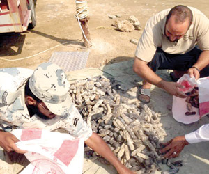 أوضح ذلك الناطق الإعلامي بقيادة حرس الحدود بمنطقة تبوك العقيد البحري عبدالله بن حمد الغرير، مشيراً إلى أنه عند الساعة الثالثة عصر أول من أمس وأثناء التفتيش المعتاد على وسائط الصيد والنزهة بمرسى الخوارة التابع لقطاع أملج، تم العثور على كمية من خيار البحر تقدر بـ3306 حبة داخل إحدى وسائط الصيد. وعلى الفور تم تسليم الكمية المضبوطة لفرع الثروة السمكية بأملج لاتخاذ الإجراءات القانونية اللازمة، باعتبار أن صيد خيار البحر يعد مخالفة لنظام الصيد تستوجب العقوبة.