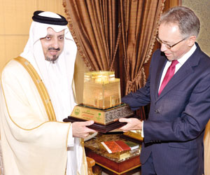 وأكد سموه خلال استقباله في مكتبه بالإمارة أمس السفير الأسترالي على عمق العلاقات التي تربط المملكة بأستراليا، متمنيا للسفير ومرافقه طيب الإقامة في المنطقة، والاستمتاع بما تحويه من أماكن سياحية.