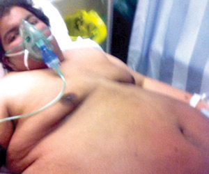إذ بدأ وزن فهد في الزيادة بشكل كبير، منذ أكثر من ثلاث سنوات ليصل الآن لنحو 300 كجم، ومع هذا الوزن المرتفع أصبح فهد أسيرا لجسمه الضخم، ليستقر أخيرا في قسم الباطنة بمستشفى الملك خالد العام بحفر الباطن، وينتظر أن يحصل على أي فرصة للعلاج في مركز متخصص، ومع طول الانتظار بدأت حالة فهد تتدهور ليصاب بضيق في التنفس حتى أصبح يستعين بجهاز الأكسجين بشكل دائم، لتصبح حياته مهددة بالخطر بشكل مستمر.